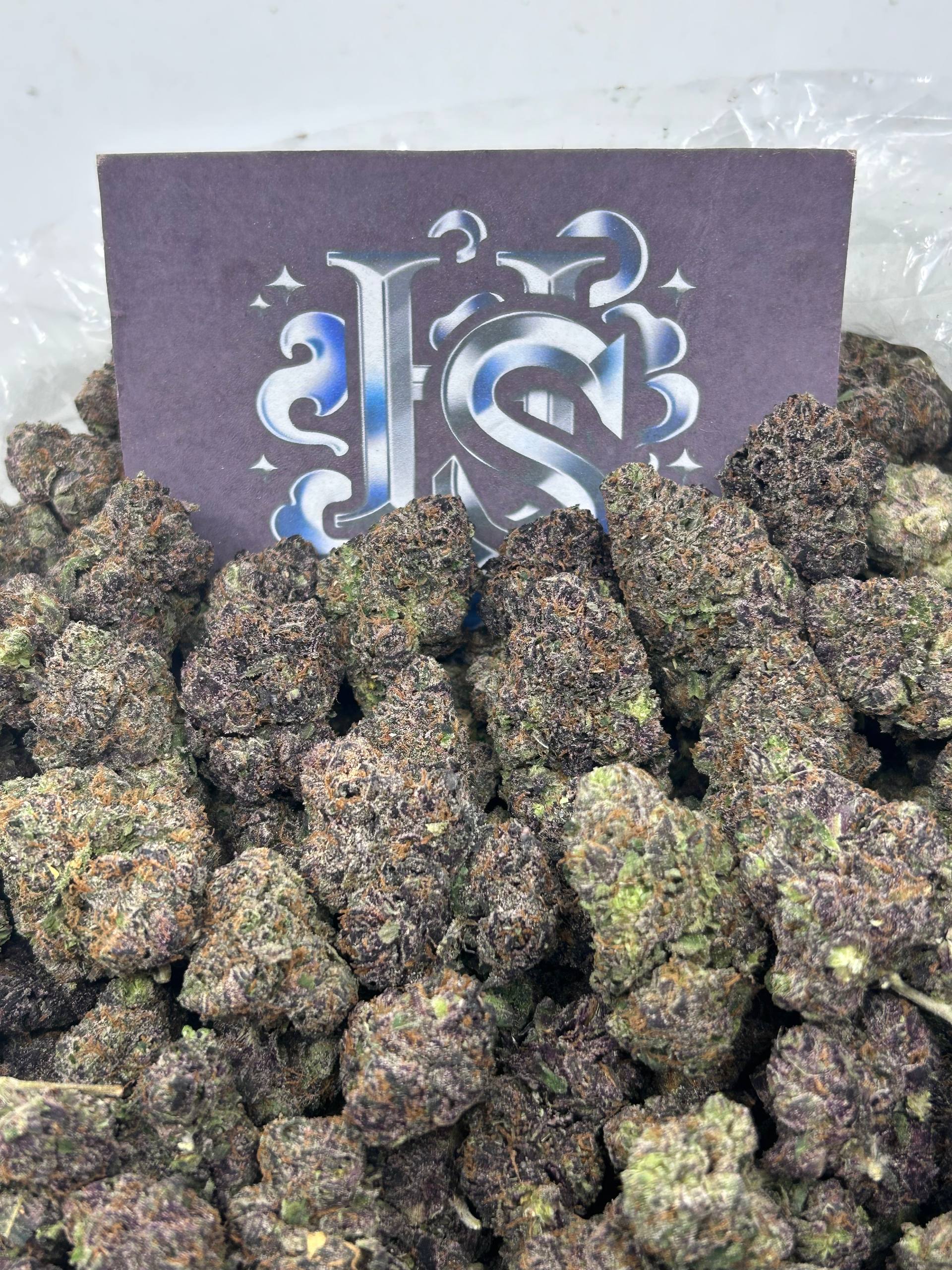 Crystal-coated purple buds with a heavy frost layer and loud profile that hits the room instantly.